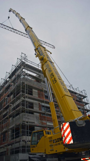 Auf der Baustelle hat der Autokran viel zu tun. Der Abbau des Baukrans wäre ohne ihn nicht möglich.