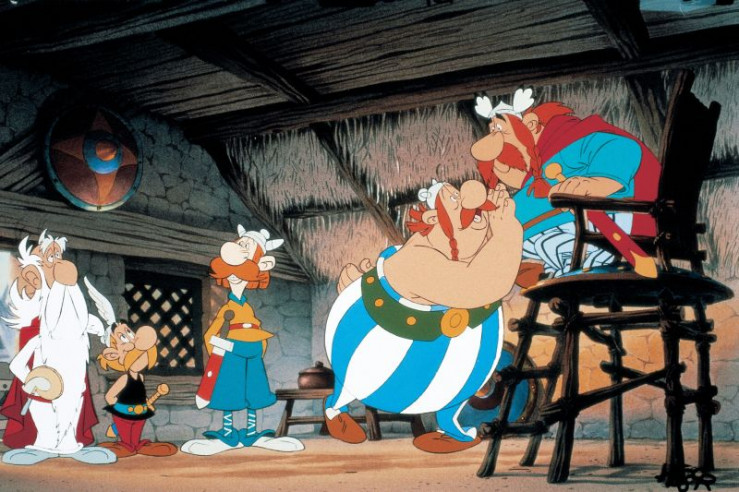 Asterix (r.) versorgt die Bewohner des britischen Dorfes mit dem Zaubertrank.