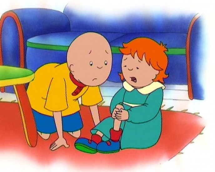 Caillou tröstet Rosie, die sich beim Spielen das Knie angeschlagen hat.