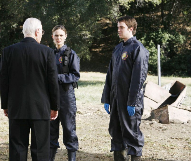 Als Brennan (Emily Deschanel, Mi.) und Zack (Eric Millegan, re.) von Pfarrer William Donlan (George Coe) gebeten werden, nach einem Wasserrohrbruch auf einem alten Friedhof einige aufgeschwemmte Leichen zu untersuchen, entdecken sie den Schädel eines Mannes, der erst vor Kurzem beerdigt worden ist.