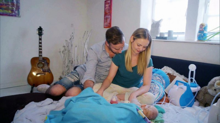 Seit vier Jahren sind Denise und Björn ein Paar, sie ehemalige Miss Germany-Finalistin, er Moderator bei einem Shoppingsender. 2016 beschließen die beiden, sesshaft zu werden und finden mit einem alten Fachwerkhaus in der Eifel ihr persönliches Traumobjekt. Das Haus ist stark renovierungsbedürftig, doch Denise und Björn bauen nach Kräften und mit Unterstützung eines Zimmermanns um. Das Glück der beiden scheint perfekt, als Denise Anfang 2017 schwanger wird. Die naturverbundene Hausfrau entscheidet sich für eine Geburt in den eigenen vier Wänden. Immer an ihrer Seite sind Björn und eine erfahrene Hebamme. Doch es kommt zu Komplikationen: Lewin bleibt im Geburtskanal stecken. Zwar kann er noch reanimiert werden, doch der lange Sauerstoffmangel hat dramatische Konsequenzen. Lewin ist seitdem ein Pflegefall, der rund um die Uhr betreut werden muss. Er kann bis heute nicht schlucken und droht an seinem Speichel zu ersticken. Die Nahrungsaufnahme erfolgt über eine Nasensonde. Welche kognitiven und motorischen Schäden zurückbleiben, kann bis jetzt noch nicht abgeschätzt werden. Björn und Denise haben viel Geld in Therapien und Hilfsmittel für Lewin gesteckt. Geld, das eigentlich für den aufwändigen Hausumbau eingeplant war. Zudem sind die Einkünfte massiv eingebrochen, da Björn nur noch drei Tage pro Woche als Moderator arbeiten kann und sich an seinen freien Tagen um Lewin kümmert. Einen geeigneten Pflegedienst gibt rund um ihren Wohnort nicht. Das "Zuhause im Glück"-Team rückt an, um der Familie zu helfen und zumindest die Last des Hausumbaus abzunehmen.