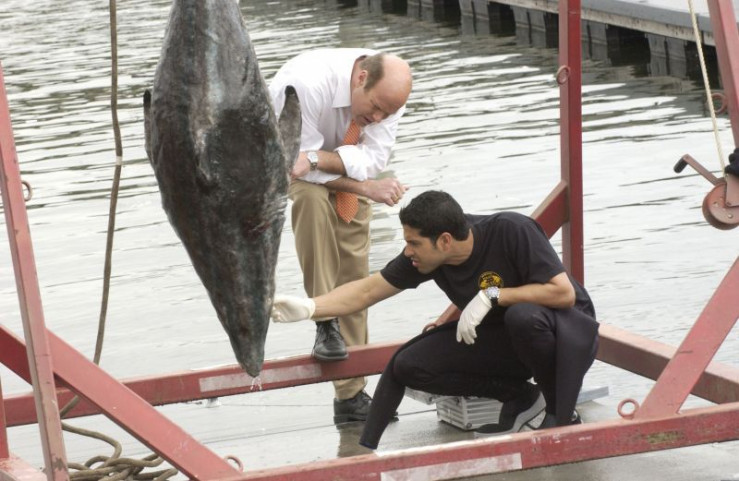 Detective Tripp (Rex Linn) begutachtet den erlegten Hai, der eine wichtige Rolle in einem Mordfall spielt. +++ Die Verwendung des sendungsbezogenen Materials ist nur mit dem Hinweis und Verlinkung auf RTL+ gestattet. +++
