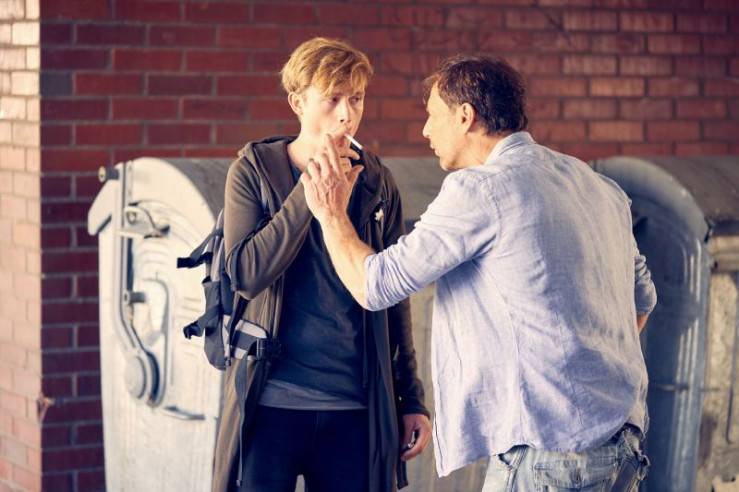 Stefan (Hendrik Duryn, r.) macht seinem neuen Schüler Clemens (Fabian Jaray) unmissverständlich klar, dass auf dem Schulgelände nicht geraucht wird. Doch Clemens ist taub.