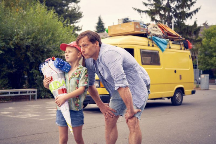 Aus dem Urlaub mit Stefan (Hendrik Duryn) geht es direkt zu Fridas (Leni Säulging) ersten Schultag.