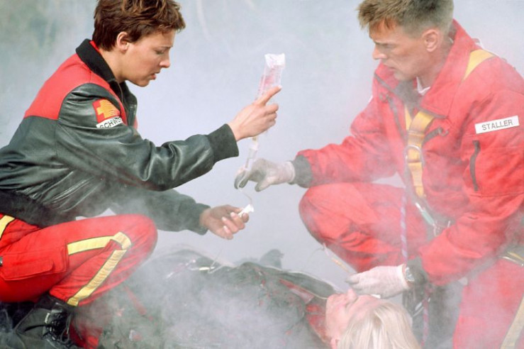 Die drei Freunde Stefan, Bernhard und Lasse treffen sich heimlich auf dem Gelände einer stillgelegten Chemiefabrik. Voller Stolz präsentiert Stefan einen Revolver, den er seinem Vater entwendet hat. Begeistert beginnt er mit der Waffe auf ein altes Fass zu schießen. Die Kinder bemerken nicht, dass plötzlich Dampf aus dem Einschussloch austritt. Ausgelassen toben die Kids über das Gelände und machen sich schließlich einen Spaß daraus, ihren Freund Lasse in die Fabrikhalle einzuschließen. Plötzlich verendet vor Lasses Augen eine Ratte in dem wabernden Dampf, der noch immer aus dem Fass austritt und der mittlerweile den ganzen Boden bedeckt. Da das Tor sich nicht öffnen lässt, versucht der Junge über eine Leiter an eins der Fenster heran zu kommen. Dabei rutscht er aus, fällt rücklings zu Boden und bleibt ohnmächtig liegen. Seine Freunde alarmieren sofort den Rettungsdienst. Aber auch die Medicopter-Crew kann das Fabriktor nicht öffnen. Notärztin Dr. Gabriele Kollmann seilt sich durch ein Dachfenster zu dem verletzten Jungen ab. Der giftige Dampf hat fast das Gesicht des Jungen erreicht, und Gabriele lässt ihn sofort von Ralf Staller in den Helicopter ziehen. Bei der Rettungsaktion löst sich plötzlich ein Eisenteil und schlägt kurz neben Gabriele aufs Podest. Es kommt zur Katastrophe: Durch den Aufprall entsteht ein Funke, der den Dampf zur Explosion bringt. Gabriele kann sich nicht mehr in Sicherheit bringen, als die Fabrik in die Luft fliegt. Mit letzter Kraft schleppt sie sich aus dem brennenden Inferno. Sanitäter Ralf Staller leistet sofort erste Hilfe bei seiner Kollegin. Die Ärztin hat schwerste Verbrennungen erlitten, und ihre Lunge scheint durch die giftigen Dämpfe völlig zerstört zu sein. Für Gabriele geht es um Leben und Tod...