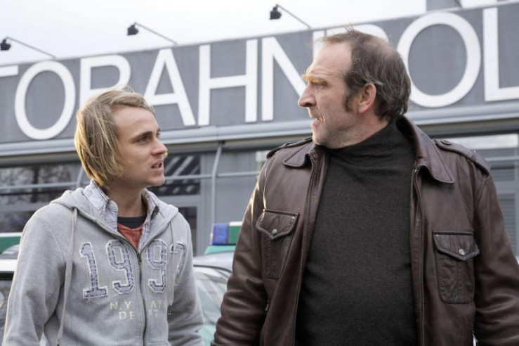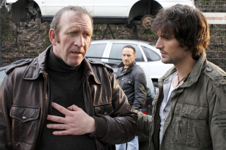 Als Charly (Jochen Nickel, re.) sich mit seinem Sohn Patrick (Constantin von Jascheroff) trifft, warnt er ihn vor dem Bandenchef Gabor. Patrick will davon nichts hören und der alte Vater-Sohn-Konflikt bricht wieder auf.