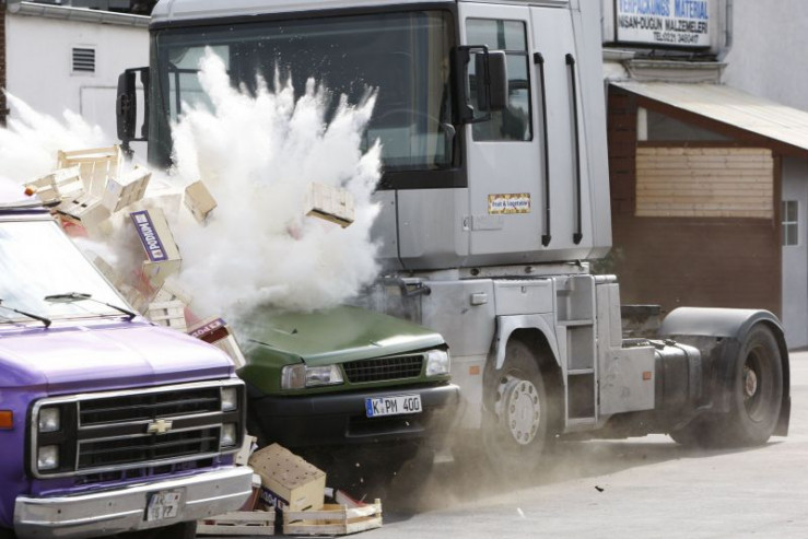 Der Drogendealer Rico flieht als Geisterfahrer und wird von einem LKW unsanft gebremst...