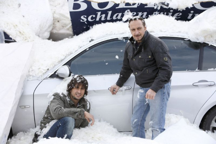 Nach einer rasanten Verfolgung des Flüchtigen gelingt es Ben (Tom Beck, l.) und Semir (Erdogan Atalay), das Fahrzeug zu stoppen. Allerdings werden die beiden Kommissare dabei ordentlich gefedert und der Fahrer kann unerkannt entkommen...
