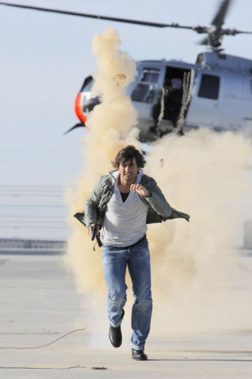 Ben (Tom Beck) sieht, wie sich der Heli der Staumauer nähert und bildet schutzlos die perfekte Zielscheibe für die Gangster...