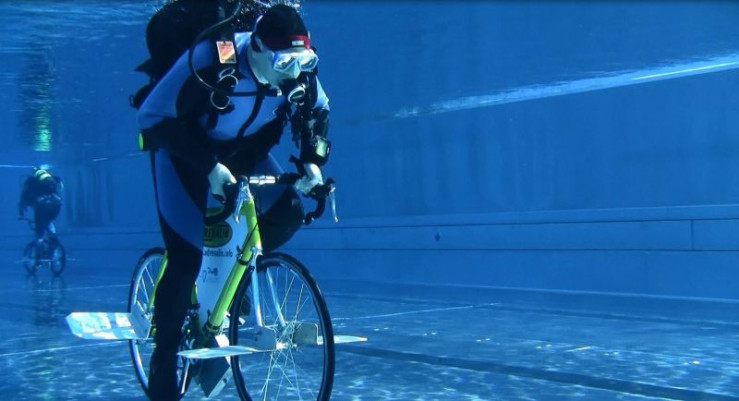 Die Weltrekord-Teilnehmerin Ulrike Winkler beim Billard spielen unter Wasser.