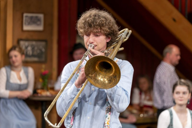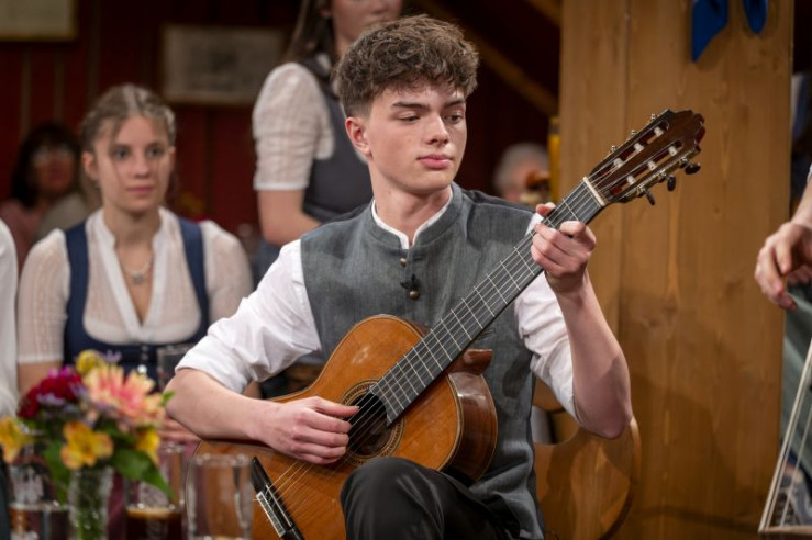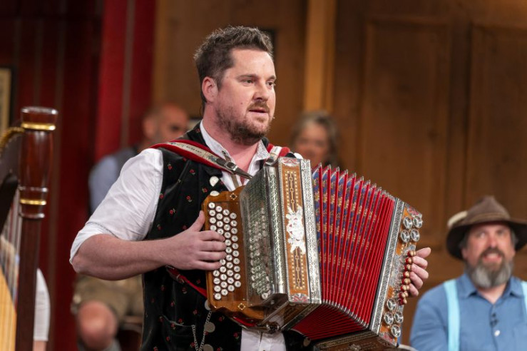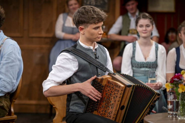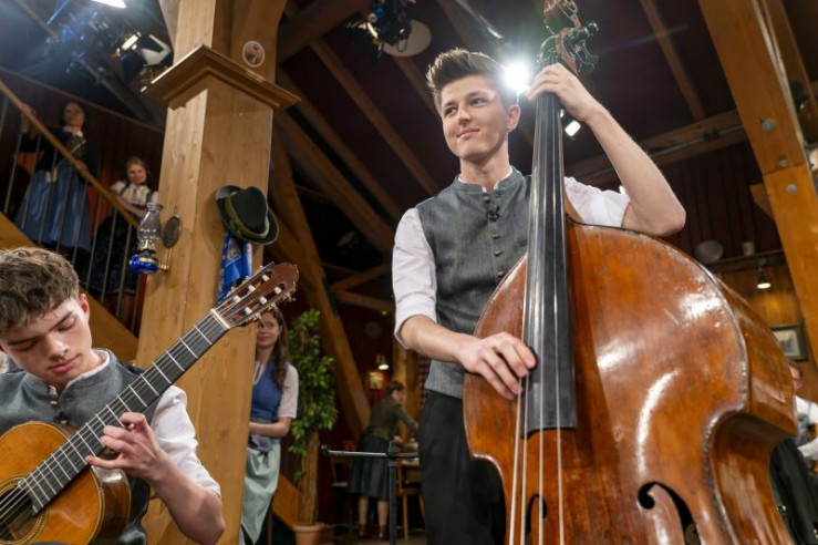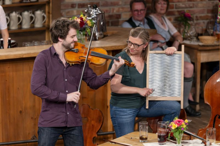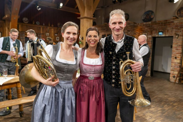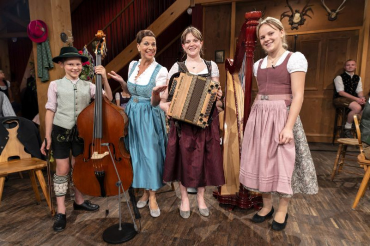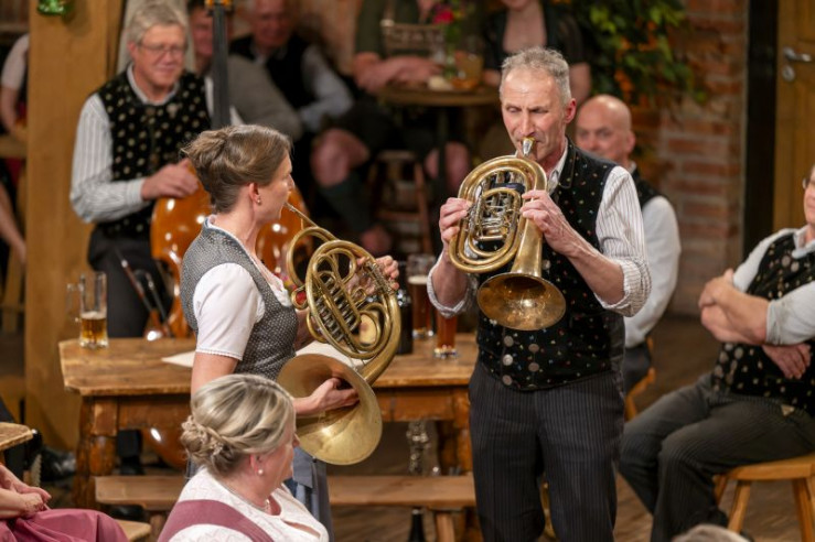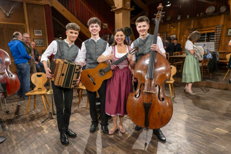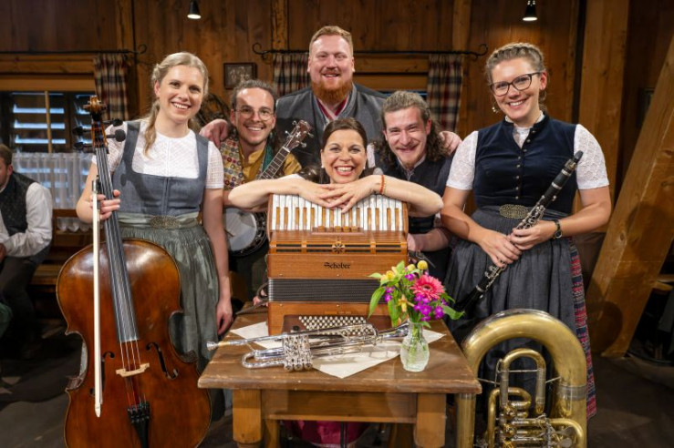 Die Werdenfoisa Woifahrts Musi mit Traudi Siferlinger (links) und Dominik Glöbl (rechts).