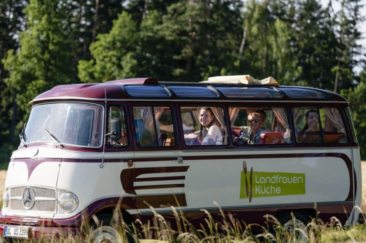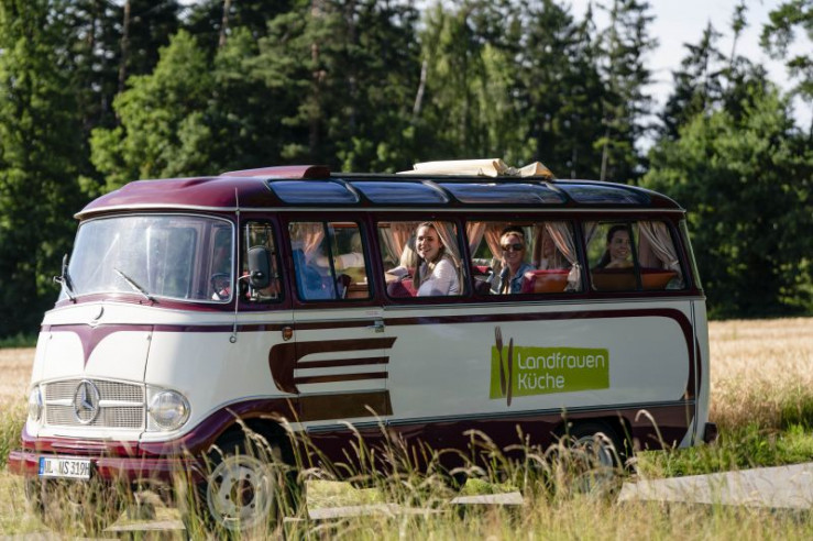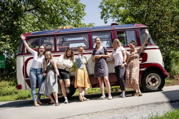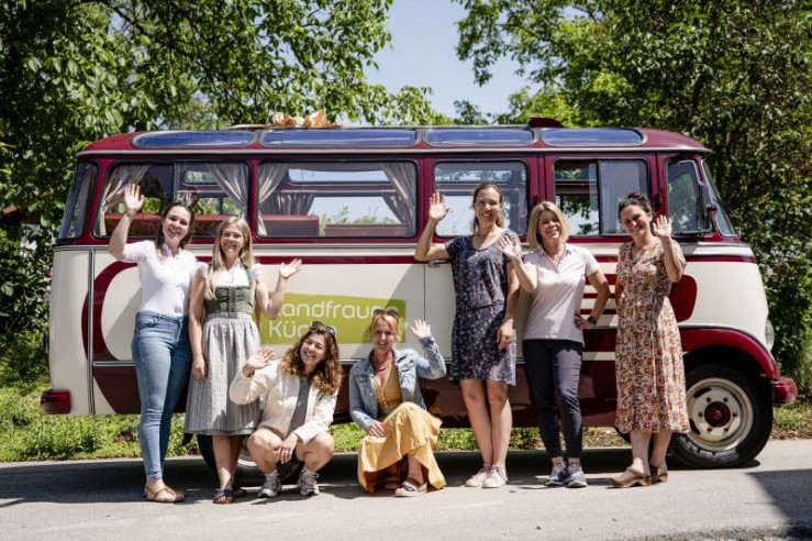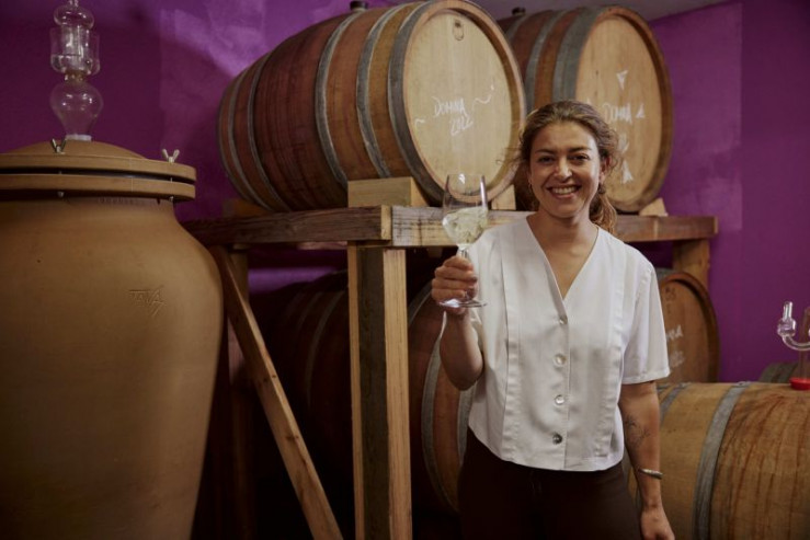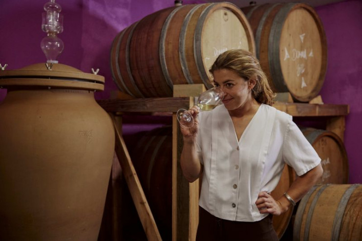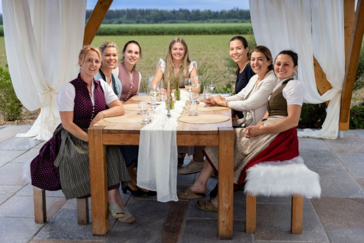 Zu sehen ist ein Portrait von der Gasstgeberlandfrau Franziska Schömig, welche im Weinkeller vor Fässern steht. Weiteres Bildmaterial finden Sie unter www.br-foto.de.
