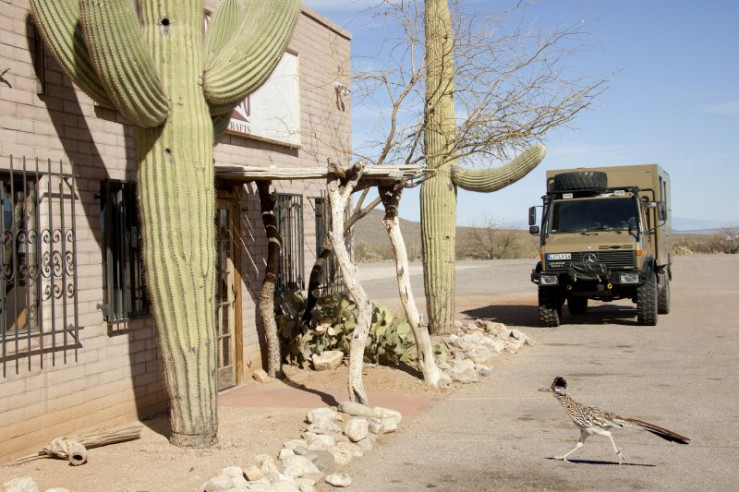 Tiere vor der Kamera Highway durch die Kaktuswüste |