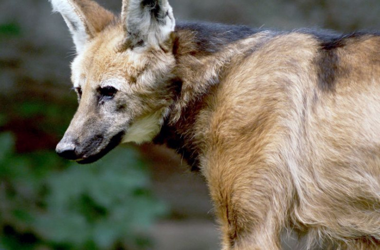 Im Refugium von Caraça überwindet ein Mähnenwolf seine Scheu, um an die bereitgestellte Nahrung zu gelangen.