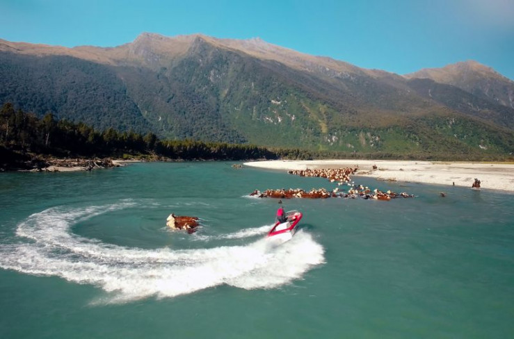 In Christchurch übernimmt der "TranzAlpine" die Führung. Er durchquert die Südalpen, bis er die Westküste erreicht. Hier sind die weißen Strände fast menschenleer. Die Gegend ist schienenfrei, das raue Klima und die isolierte Lage haben die Urlandschaften bewahrt. Seit Generationen werden Hunderte von Rindern zwischen Regenwäldern und steilen Felswänden mit dem Jetboat durch den Gletscherfluss am Arawhata-Tal getrieben.