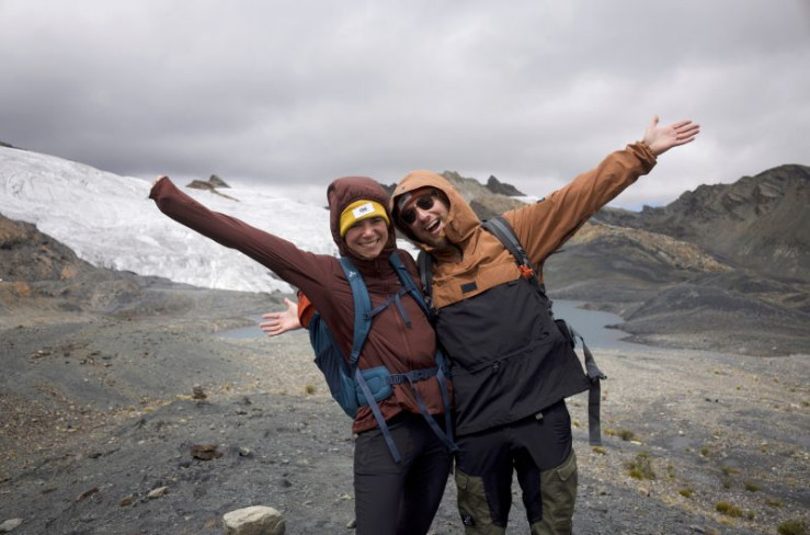 Svenja und Sebastian wandern mit Hündin Pepper auf dem Inka-Trail, nördlich von Cusco in Peru.