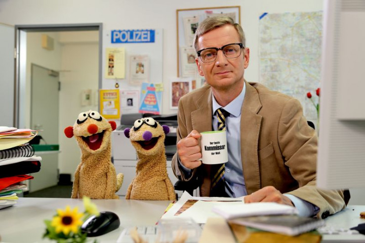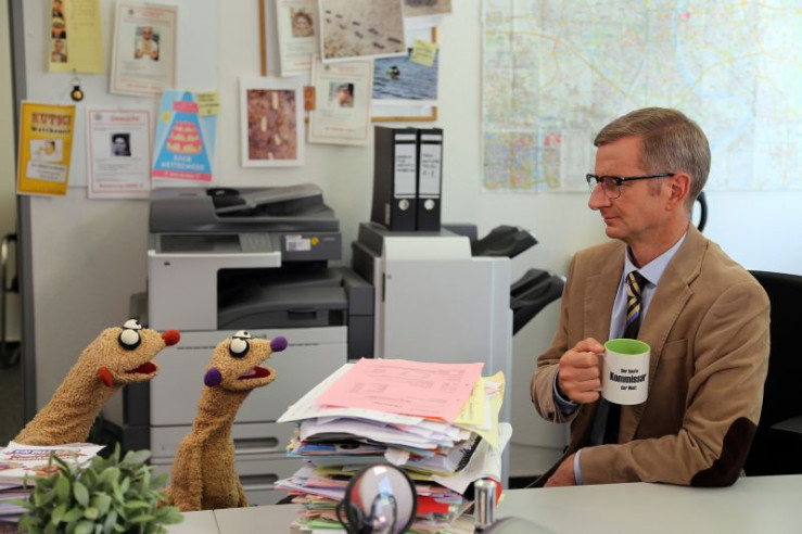 Die Erdmännchen-Detektive Jan & Henry im Büro von Kommissar (Michael Kessler).