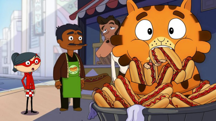 Jean Cat schwebt im siebten Himmel: Während ihres Besuchs in New York können Mirette und er beim Dreh seiner Lieblingsserie zuschauen. Doch die Dreharbeiten geraten außer Kontrolle: Serienstar Pamela fällt ständig in Ohnmacht und steht kurz vor dem Rauswurf. Und ihr Filmpartner Tom will nicht weiter arbeiten, weil ihm sein Hotdog nicht schmeckt. Mirette und Jean Cat klappern ein paar Hotdog-Buden ab und merken bald, alle Hotdogs in New York schmecken süß wie Choomalloos. Versucht da etwa jemand mit fiesen Tricks, Jean Cats Lieblingsserie zu sabotieren? Ein neuer Fall für unsere Detektive!