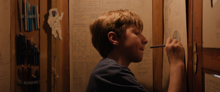 Tom (Theo Kretschmer) zeichnet auf der Innenseite seines Schrankes eine Weltkugel.