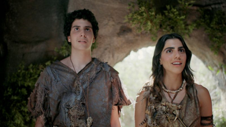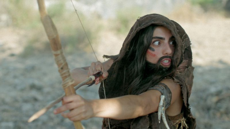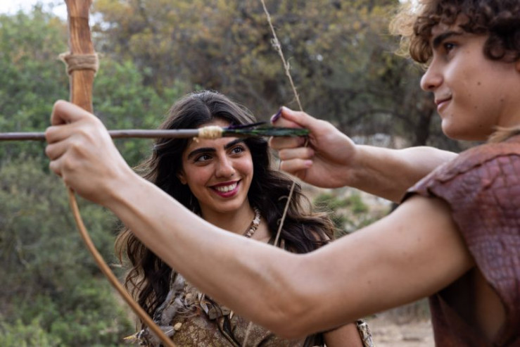 Häuptlingssohn Ubu (Itay Tarhanov) und seine beste Freundin Booga (Noa Astanjelove) beim Training fürs Bogenschießen