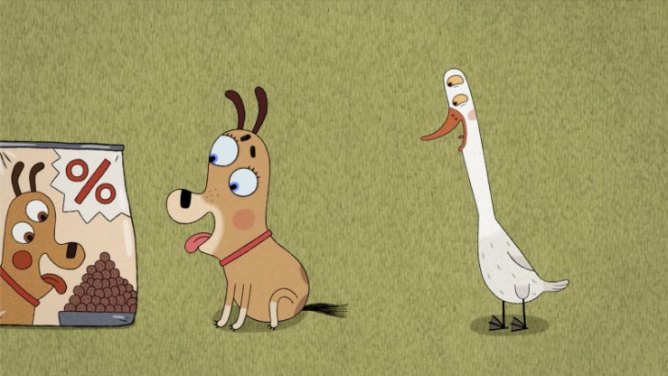Das Futter für Lenas Hund ist ausgegangen. Da kommt der fliegende Händler wie gerufen. Er hat eine Packung an Bord. Während Lena den Händler bezahlt, entkommt eine Ente aus dem Lieferwagen.