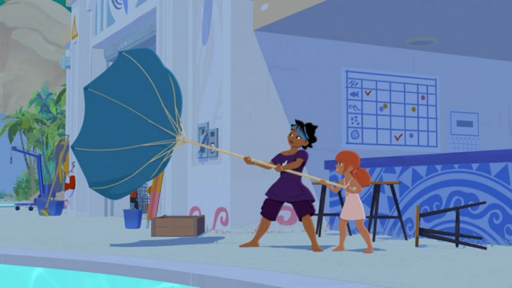 Auf Maotou bringt ein heftiger Wind alles durcheinander. Maimiti (l.) und Marina (r.) versuchen, noch schnell alle Dinge in Sicherheit zu bringen. © ZDF/Media Valley/Marzipan Films - Honorarfreie Verwendung gemäß AGB im redaktionellen Zusammenhang mit genannter Sendung bei Nennung "Bild: ZDF/Media Valley/Marzipan Films" einschließlich Social Media Einschließlich Social Media© ZDF/Media Valley/Marzipan Films - Honorarfreie Verwendung gemäß AGB im redaktionellen Zusammenhang mit genannter Sendung bei Nennung "Bild: ZDF/Media Valley/Marzipan Films" einschließlich Social Media Einschließlich Social Media
