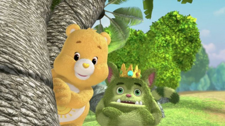 Sonnenscheinbärchi und Beastli beobachten, wie Brummbärchi und Anton ausgelassen spielen.