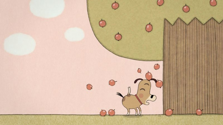 Lenas Hund versteht die Welt nicht mehr. Sein Lieblingsbaum, an den er immer pinkelt, beschmeißt ihn plötzlich mit Äpfeln.