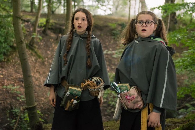 Mildred (Bella Ramsey, l.) und Maude (Megan Hughes, r.) sammeln im Dunkelwald Zutaten für den Zaubertränke-Unterricht. Ganz geheuer ist ihnen der Wald nicht, denn da passieren merkwürdige Dinge.