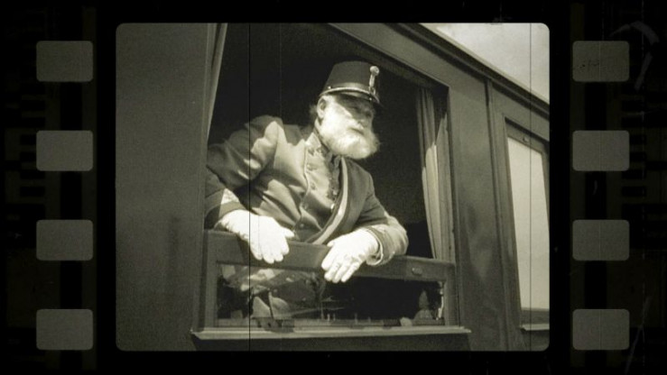 Kaiser Franz Joseph I. am Waggonfenster. (Nachgestellte Szene)