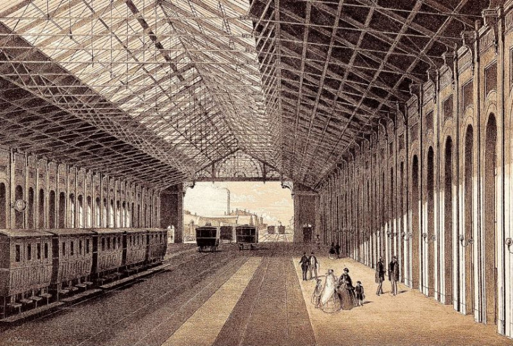 Die erste Ansicht des neuen Wiener Westbahnhofes, der für die Kaiserin Elisabeth Bahn 1860 erbaut wurde.