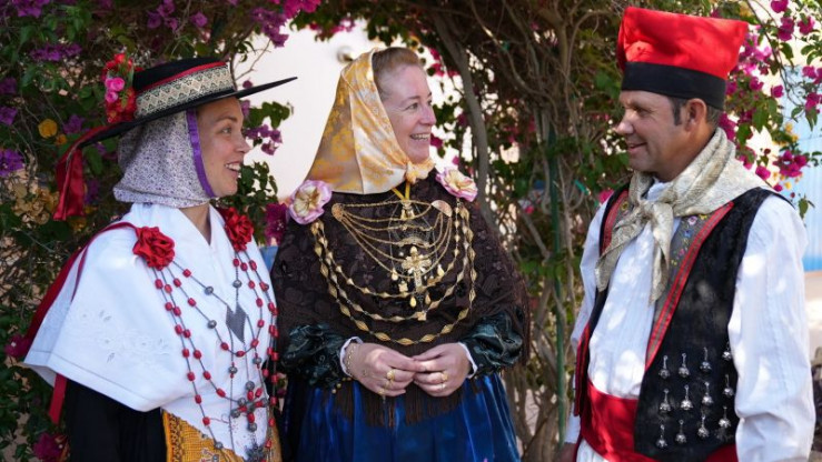An Land bereiten sich die Tänzerinnen des traditionellen Bauernballs, des "Ball Pagès", auf ihren Auftritt vor. Dafür müssen aufwendige Kostüme geschneidert, Instrumente und Tänze geübt werden.