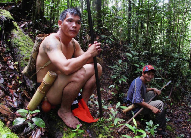 Lubun Petrus (l.) mit dem Blasrohr auf der Jagd im Urwald