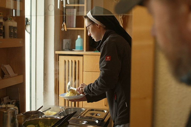 Schwester Clara Marie (29) findet ihren Weg im direkten Dienst am Menschen. Im Crescentiakloster in Kaufbeuren ist die Essensausgabe an Bedürftige fester Bestandteil ihres Alltags. Hier begegnet sie Menschen auf Augenhöhe, hört zu, teilt Essen und Zeit. Für sie ist dieser Ort mehr als nur Versorgung - er ist ein Raum der Würde und Gemeinschaft: "Ich spüre eine enge Geschwisterlichkeit zu den Menschen, die zu uns kommen und fühle mich jedes Mal durch die Dankbarkeit der Gäste getragen." Ihr Tag strukturiert sich durch die regelmäßigen Gebetszeiten, doch Sr. Clara Marie findet Gott auch außerhalb: "Beim Bouldern und Wandern habe ich eine ganz innige Verbindung zu Gott und frage mich da immer: Was ist mein Halt? Worauf kann ich mich verlassen?"