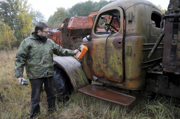 Das Filmteam hat ständig diverse Messgeräte dabei, um stark kontaminierte Stellen in der Zone zu erkennen und zu meiden.