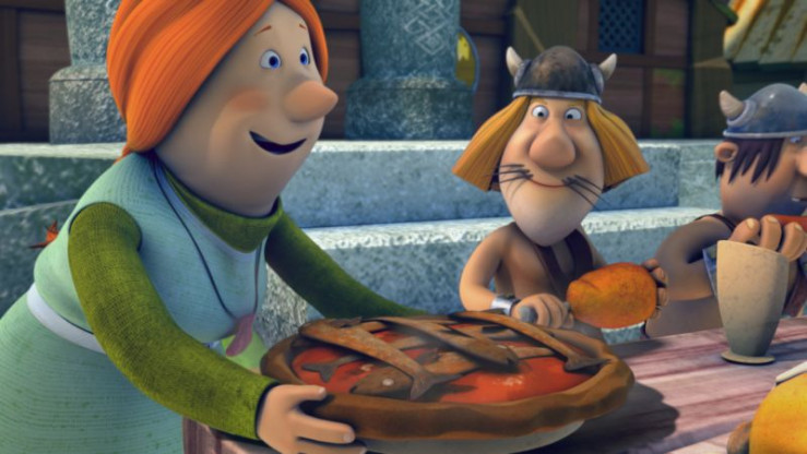 Doch vor der Arbeit kommt das Vergnügen. Die Piraten lassen sich von Ylva bekochen und schlagen sich die Bäuche voll. Kein Wunder, dass ihre Aufmerksamkeit dabei kurzzeitig nachlässt. Wickie nutzt die Gelegenheit und alarmiert Halvar.