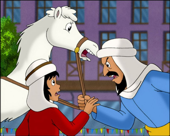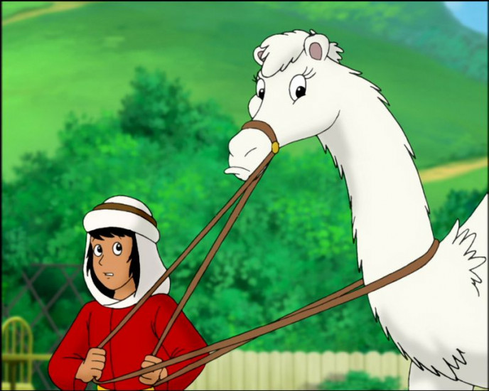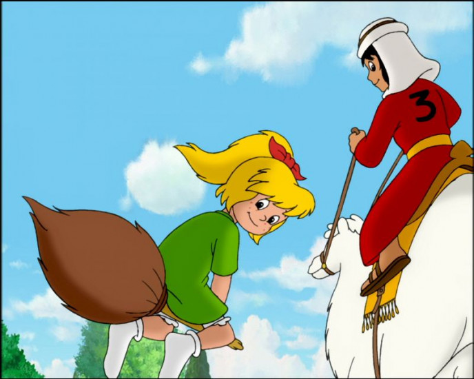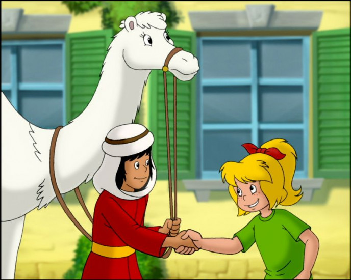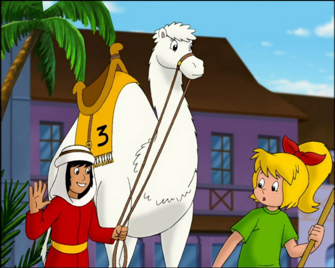 Sein Onkel Ahmed hat ihm verboten, das Dromedar Drusa beim bevorstehenden Kamelrennen als Jockey zu reiten. Um Ahmed umzustimmen, lässt Bibi Drusa nur noch rückwärts laufen. Da will der Onkel das Dromedar an einen Zirkus verkaufen.