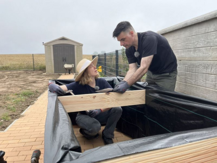 Um Kosten zu sparen, wird die Familie aktiv in den Umbau mit eingebunden - unter Anleitung des Gartenprofis.