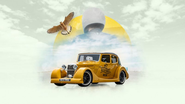 The official press launch of The Flying Kestrel at legendary racetrack, Santa Pod. The Kestrel team is joined by Victor Riley of Riley Cars, and celebrity Rachel Riley.