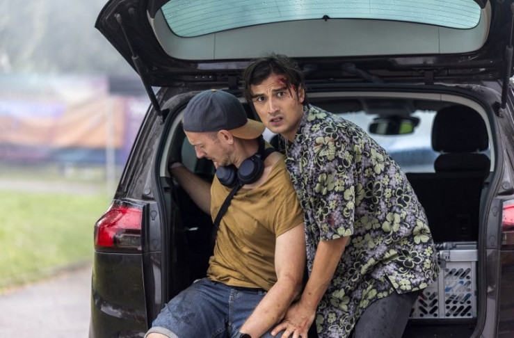 Dr. Mikko Rantala (Luan Gummich, r.) trifft auf die Festivalbesucherin Beatrice Punsch (Imke Büchel, l.), die sich eine Armverletzung beim missglückten Stagediving zugezogen hat.