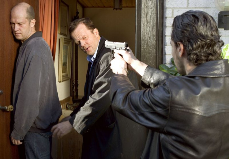 Kommissar Wallander (Krister Henriksson) und sein Kollege Stefan Lindman (Ola Rapace, links) sind einem mutmaßlichen Mörder auf der Spur.