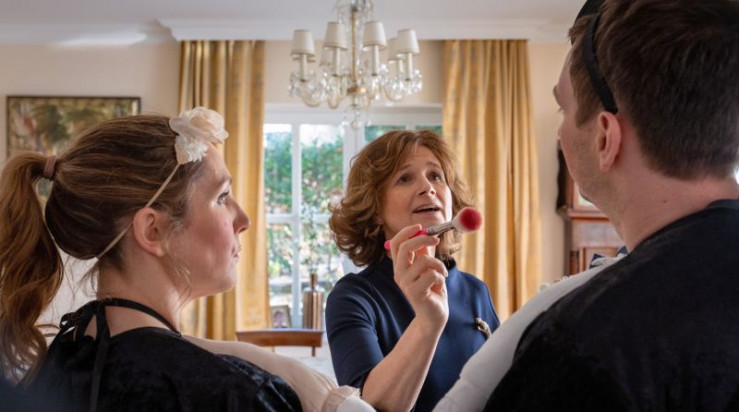 Plant mit (Über-)Eifer die Hochzeit ihres Sohnes Nils (Johannes Kienast) und Inka (Nikola Kastner, l.); Renate (Victoria von Trauttmansdorff, M.)