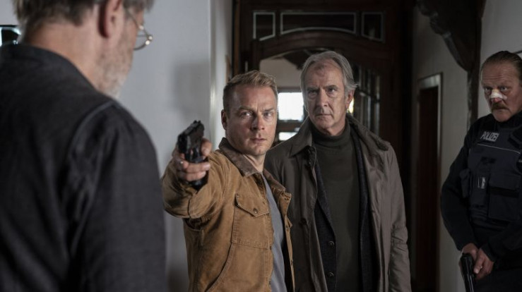 Hauke (Hinnerk Schönemann) nimmt Oliver Dursthoff (Wolfgang Dursthoff) fest (mit Peter Prager und Jürgen Rißmann)