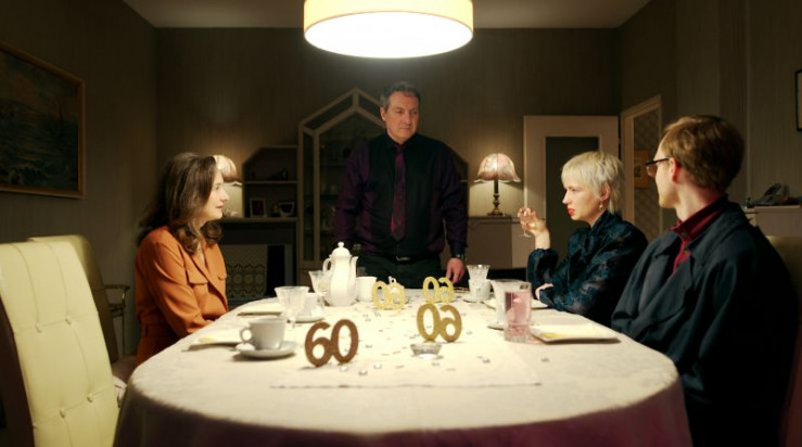 Die Geburtstagsfeier endet in einer Tragödie (v. li. n. re.): Sylvie Rohrer (Gertraud), Robert Palfrader (Hans), Zoë Valks (Gundi), Sammy Scheuritzel (Georg)