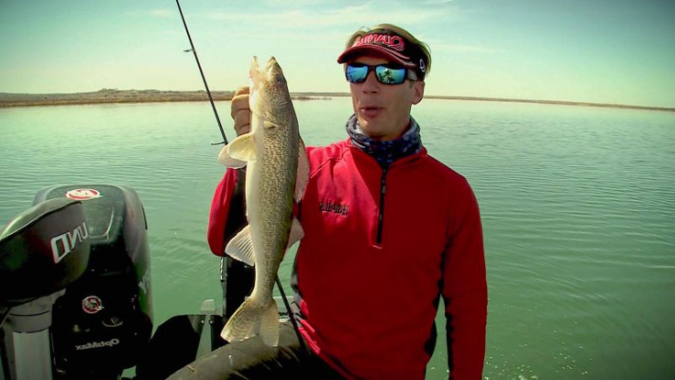 Al und Troy Lindner fischen in der Sonnenlicht Zone des Ute Stausees. Spezielle Jigging Techniken fangen die Fische auf ihrem Weg zu den Laichplätzen ab.