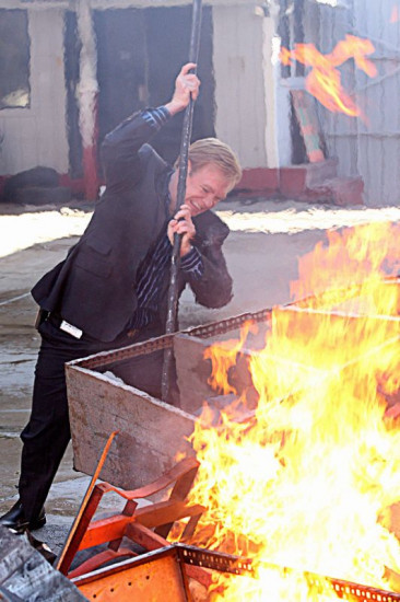 Horatio (David Caruso) versucht den brennenden Mann, der offensichtlich auf einem Haufen von Schrott und Reifen mit Benzin übergossen und angezündet wurde, zu retten... +++ Die Verwendung des sendungsbezogenen Materials ist nur mit dem Hinweis und Verlinkung auf RTL+ gestattet. +++