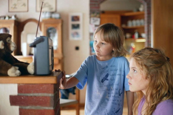 Hannah (Paula Kalenberg) und ihr kleiner Bruder Uli (Hans-Laurin Beyerling) hören die schrechlichen Nachrichten aus dem Radio