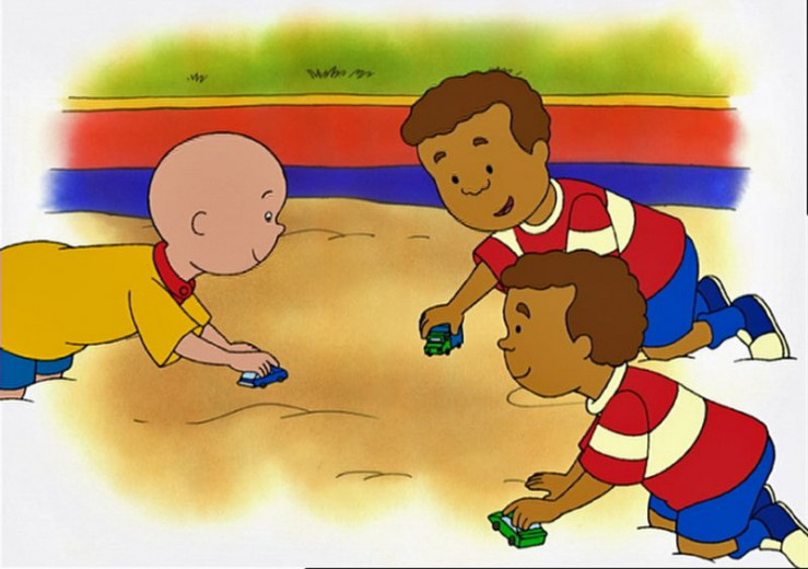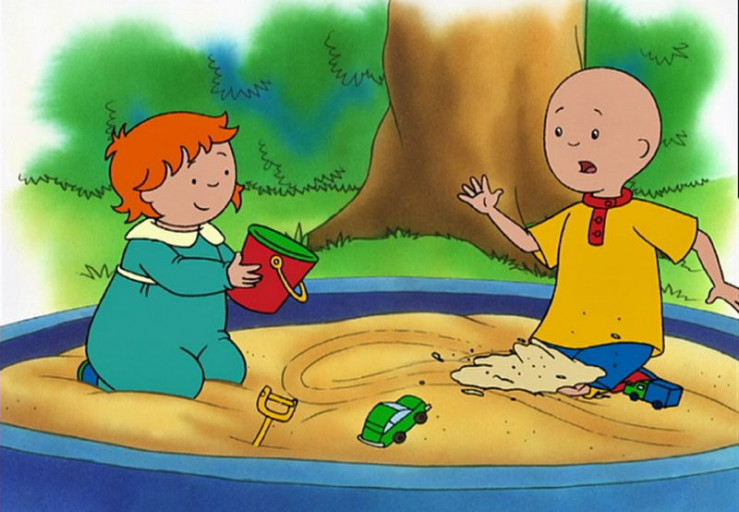 Caillou liebt es, mit seinen Freunden in der Sandkiste zu spielen.