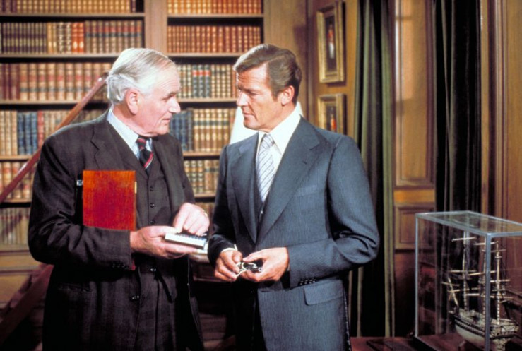 Q (Desmond Llewelyn, l.), James Bond (Roger Moore)