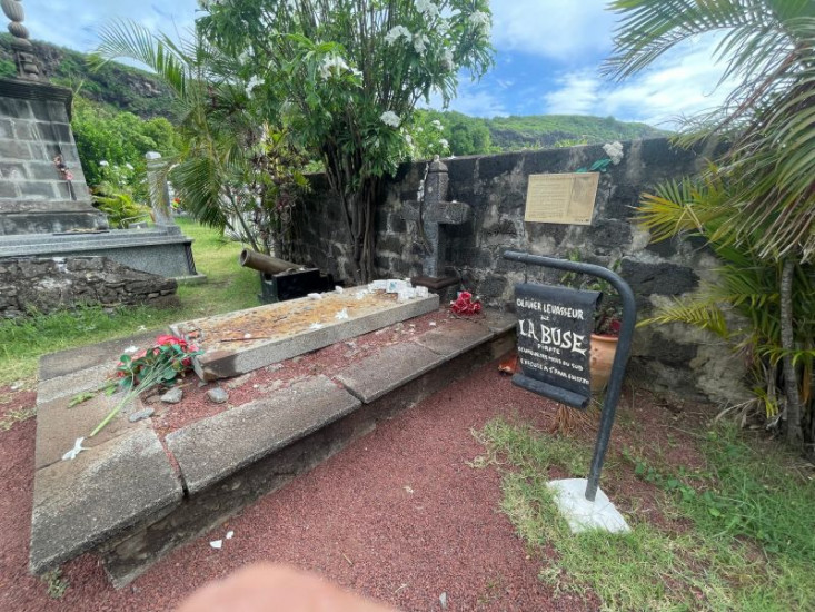 Der Legende nach warf der Pirat La Buse kurz vor seiner Hinrichtung einen Zettel in die Menge, auf dem er in Geheimschrift Hinweise auf das Versteck seines Schatzes gegeben haben soll.